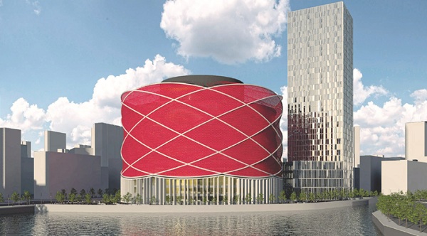 武漢中央文化區漢秀劇場由萬達集團投資建設,項目位于武漢東湖,是國內第一個水秀表演場所,造型酷似燈籠,建筑外墻由內、外兩層幕墻構成,內層為直立鎖邊系統及玻璃幕墻系統,外層由56榀不規則輪輻鋼結構及18400個定位均不相同的中國紅碟片構成燈籠皮裝飾。