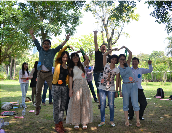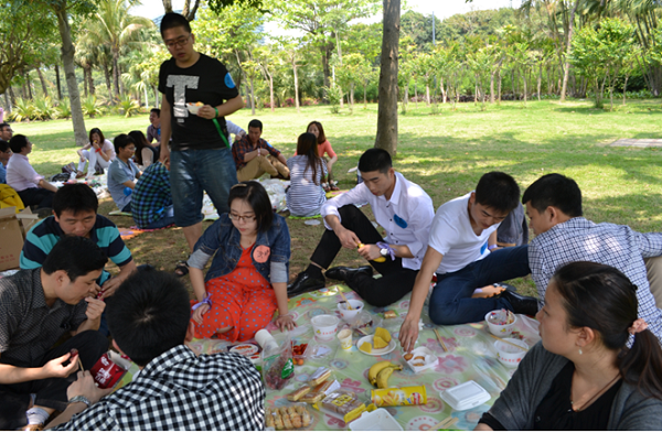 活動當天,大家意興盎然來到了深圳灣公園,通過簡單的自我介紹,在5分鐘時間內迅速找到自己的搭檔,然后進行互相介紹,之后每個人拿出自己精心準備的食物跟大家進行分享。分享過后大家迫不及待地投入到“報紙大聯盟”、“五毛一塊”、“幸福彼岸”、“群魔亂舞”“電動馬達臀”等游戲中。大家用歌聲、舞蹈和游戲傳遞著快樂與情誼,進一步拉近著彼此間的距離。一個個激動人心的互動小游戲將聯誼會推向高潮,一個個刁鉆的懲罰方式更令人捧腹。在“報紙大聯盟”、“幸福彼岸”的游戲環節中,大家踴躍參加,使出渾身解數,各顯智慧,用默契的配合共同爭創佳績。游戲之后,大家進入到了最神秘的“背對背的秘密”環節,男女生各站一排,相背而坐,大家依次將自己的心意卡放進了心儀異性的信封中。最后,大家兩兩相約,共同踏上單車盡享初夏深圳灣的風景。整個活動中,大家熱情交談,彼此了解興趣愛好,互留聯絡方式,活動之后還制作了聯誼會通訊錄,以便今后更好地繼續交流互動。