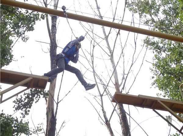 接著,兩個小組分別進行了“信任背摔”、“七巧板”、“高空斷橋”等科目培訓,以建立團隊成員間的相互信任,有效溝通與自我突破。“尋找劉連長”活動在影視城穿越中進行,兩個小隊按照教練給定的“動感顛球”、“穿越A4紙”、“飛龍升天”、“眉目傳情”、“百獸秘影”5個圖片的先后順序找到相應的點,通過大家的集思廣益相互協(xié)作和有效溝通完成,最終在規(guī)定時間內找到劉連長。通過這個訓練科目,大家明白了個人是整體的一部分,在聽從指揮的情況下,還要發(fā)揮各自的特長,把優(yōu)質資源整合在一起,才能發(fā)揮更大的作用,產生更大的效能,實現(xiàn)最終目標。