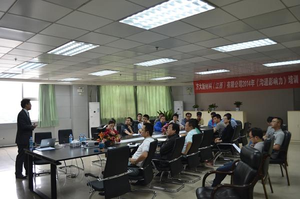 5月17日至18日,為提高中高層管理人員的溝通技巧及基層骨干的職業化素質,江西新材在公司辦公大樓二樓會議室,分別組織開展了主題為《溝通影響力》及《職業化塑造》的培訓課程,由英國威爾士大學MBA的呂錚老師進行授課。