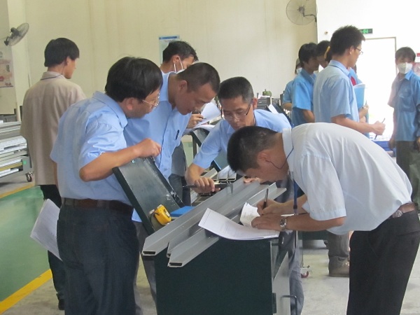 在本次“質量月”活動中掀起了學知識、練技能的高潮,增強了員工的質量觀念和意識。自動化公司工廠、型材加工廠、配件加工廠:對操作工人進行言傳身教方式的操作培訓,要求工人加強自檢,嚴格控制產品質量,對操作工人進行了量具使用的培訓;加強了員工的看圖識圖培訓。組裝廠:堅持定期會議,提高員工的質量意識,每天生產結束后,質檢員對當天的生產和質量情況進行小結,并定期在車間以予公示;使車間的制造質量整體上得到了改善和提高。
