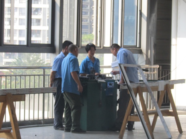 評審組成員和現(xiàn)場質檢人員正在對產品的數據進行認真檢測與填寫