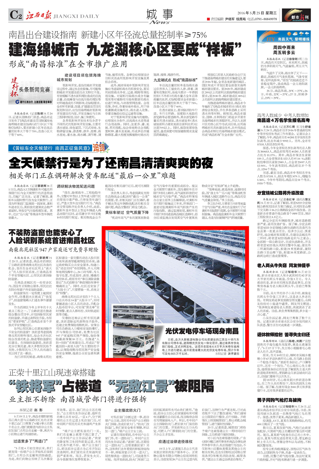 《江西日?qǐng)?bào)》、《南昌日?qǐng)?bào)》重點(diǎn)版面圖文報(bào)道方大新能源公司江西五十鈴?fù)\噲?chǎng)光伏發(fā)電項(xiàng)目